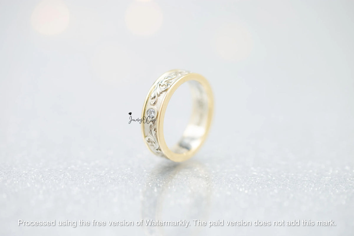 0.60Ct Round Cut Diamond Leaf Style Wedding Band For Her – JewelryOCity