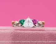 3.30Ct Trillion Cut Diamon, Emerald & Ruby Twisted Engagement Ring