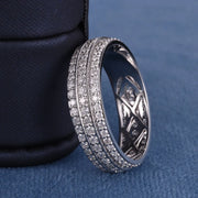 4CT Round Cut VS Diamond 3 Row Iced Out Wedding Band Ring For Her